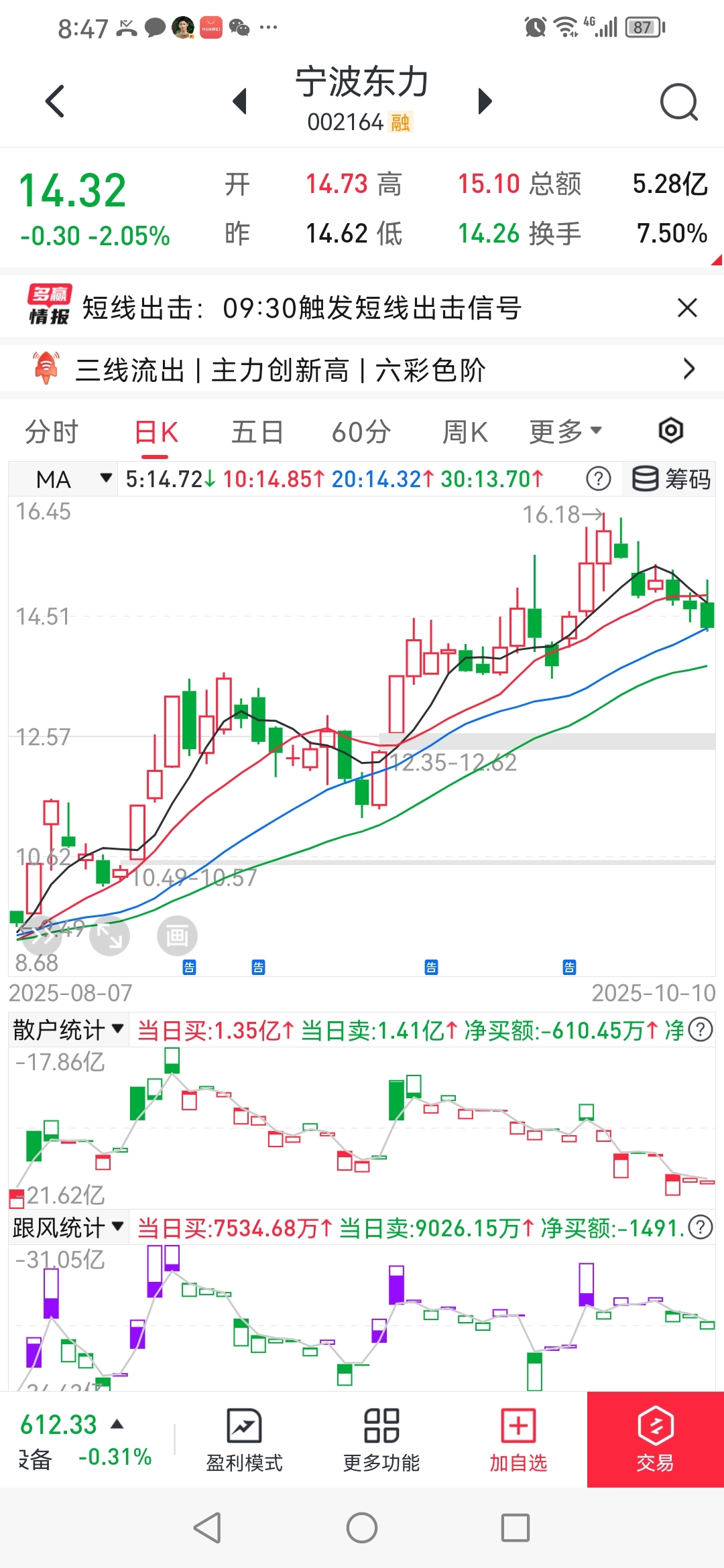 $宁波东力(SZ002164)$ 经传多赢手机版数据短线王123元,量化庄程序请看以往评论区。大单买货,大单是不能随便抛货的,沙茶货。庄吃货,没有必要抛大单货。