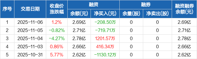宁波东力:融资净偿还208.5万元,融资余额2.69亿元(11-06)