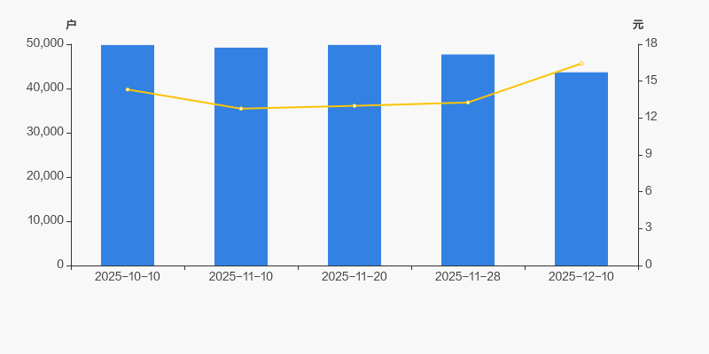 2025年10月10日至今,公司股东户数显著下降,区间跌幅为12.37%。2025年10月10日至2025年12月10日区间股价上涨14.73%。