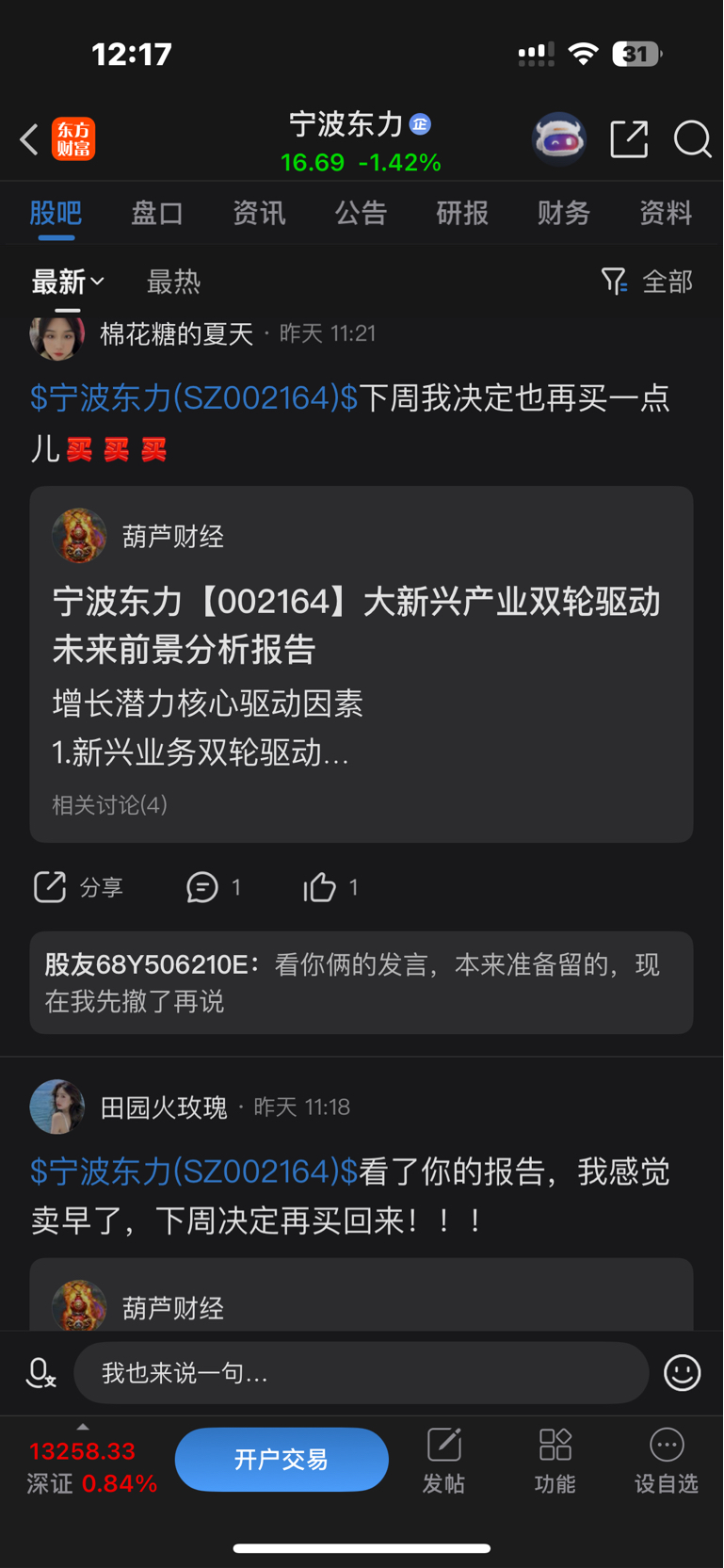 $宁波东力(SZ002164)$  几个注册几天的小号开始唱多了,勾托了来了,周一大家注意