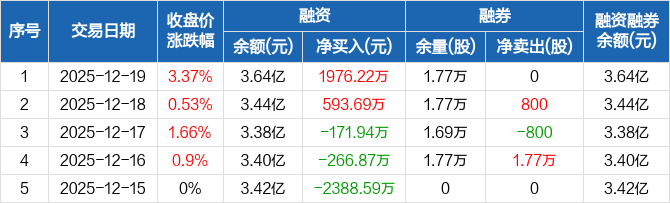 宁波东力:融资净买入1976.22万元,融资余额3.64亿元(12-19)