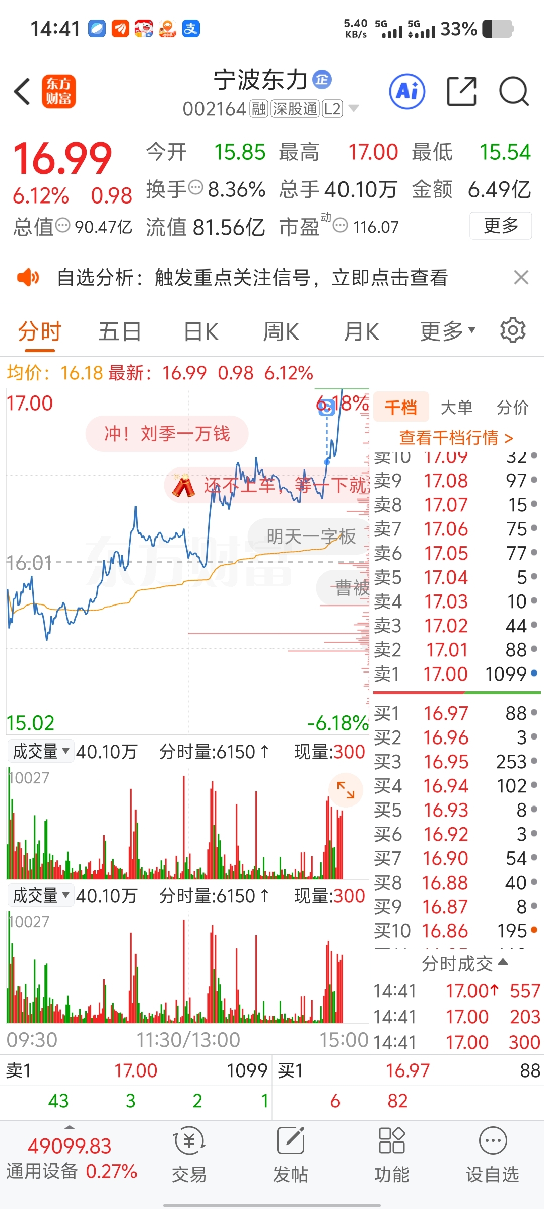 $宁波东力(SZ002164)$ 16.58清仓了,一卖就拉升,服了