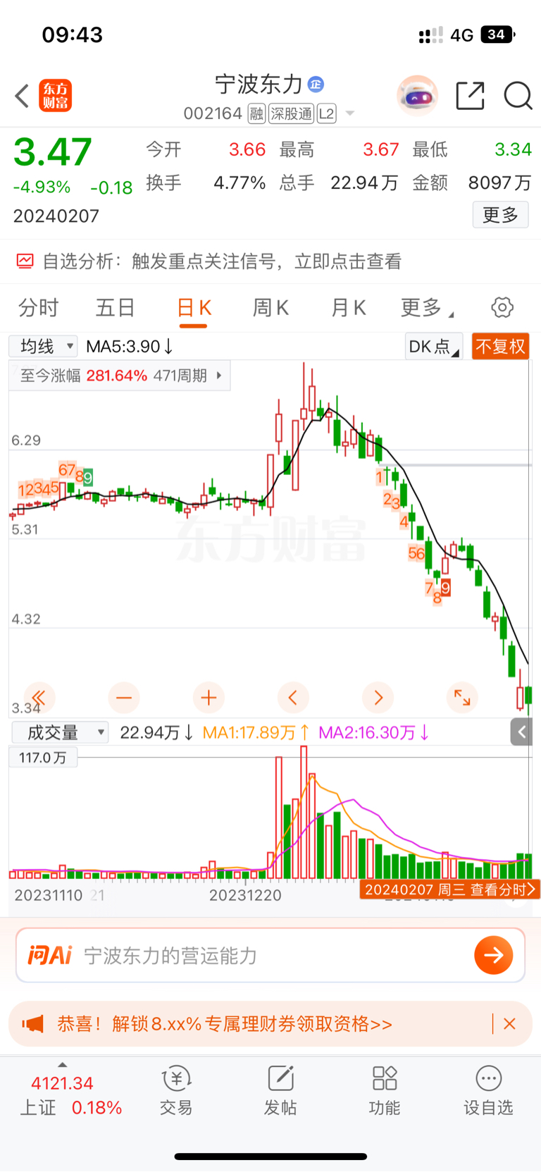 $宁波东力(SZ002164)$ 过来看看 在等几个大跌