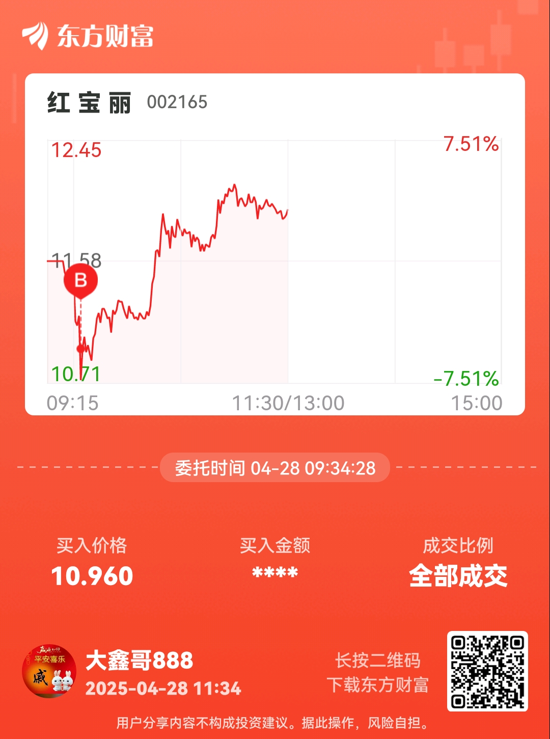 温馨提示: 1.根据《证券法》规定,禁止编造、传播虚假信息或者误导性信息,扰乱证券市场;2.用户在本社区发表的所有资料、言论等仅代表个人观点,与本网站立场无关,不对您构成任何投资建议。用户应基于自己的独立判断,自行决定证券投资并承担相应风险。《东方财富社区管理规定》