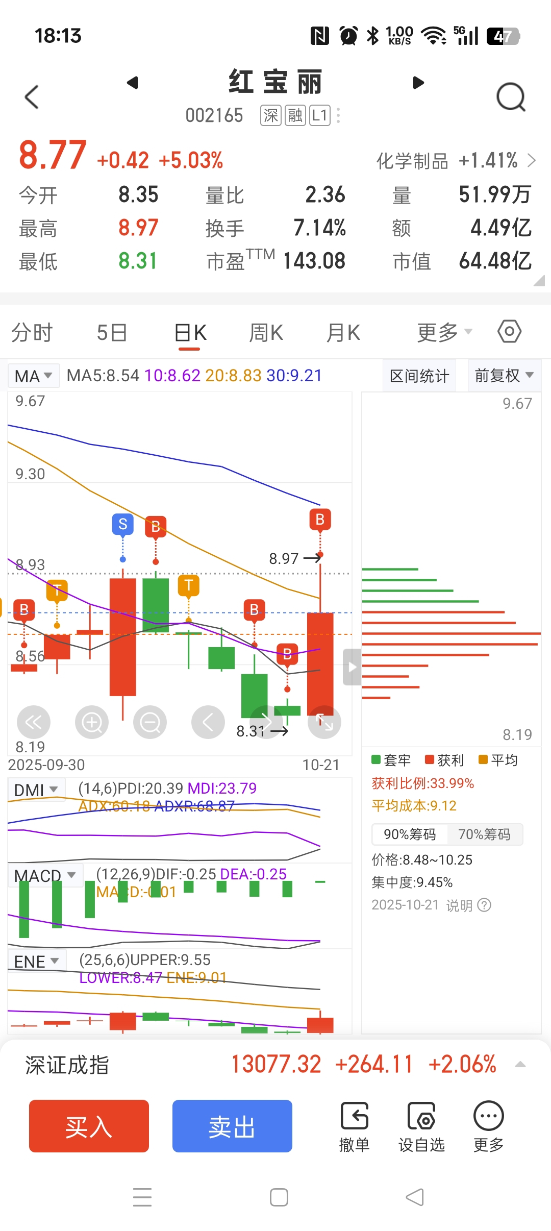 $红 宝 丽(SZ002165)$ 没有十块以上我不会交出筹码