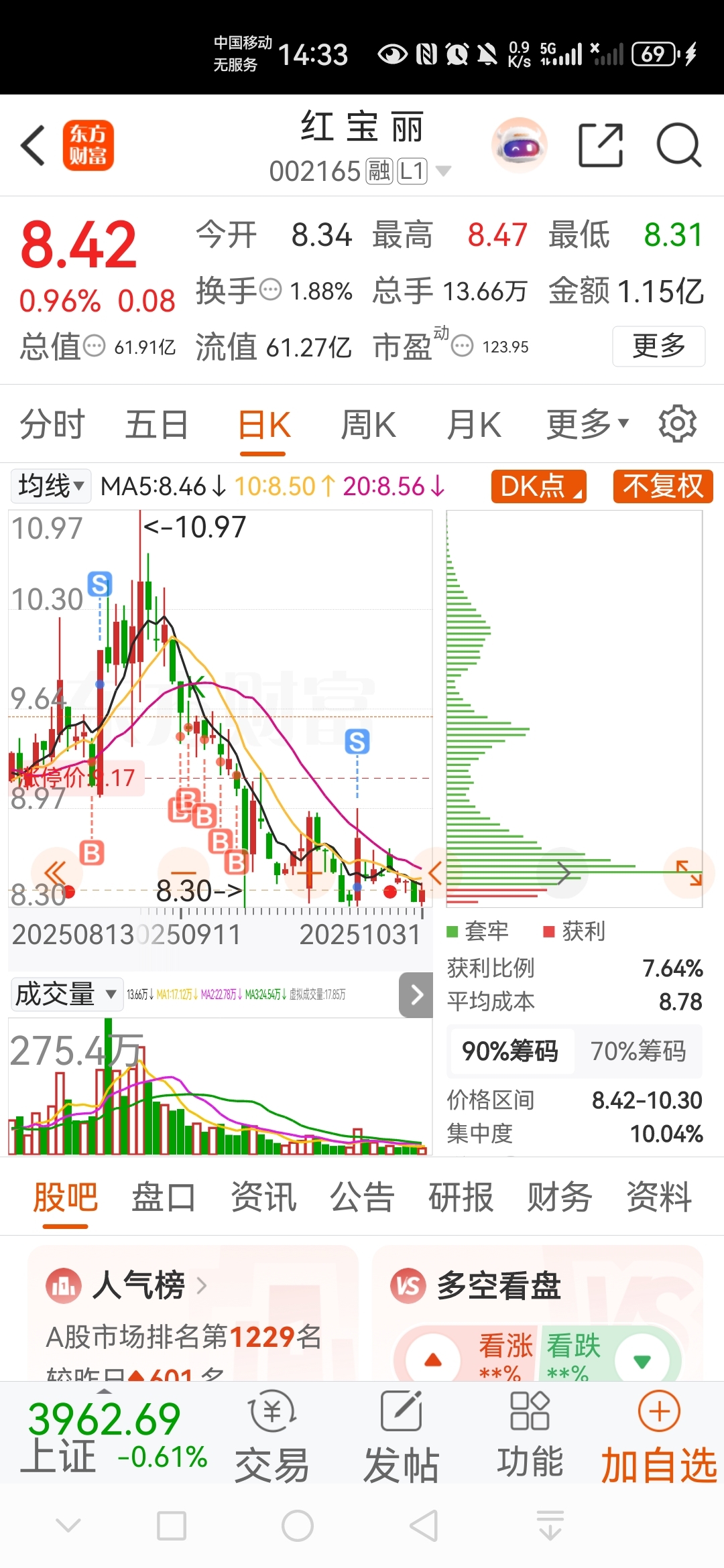 $红 宝 丽(SZ002165)$ 筹码峰都低了,看得出来很多人割肉了