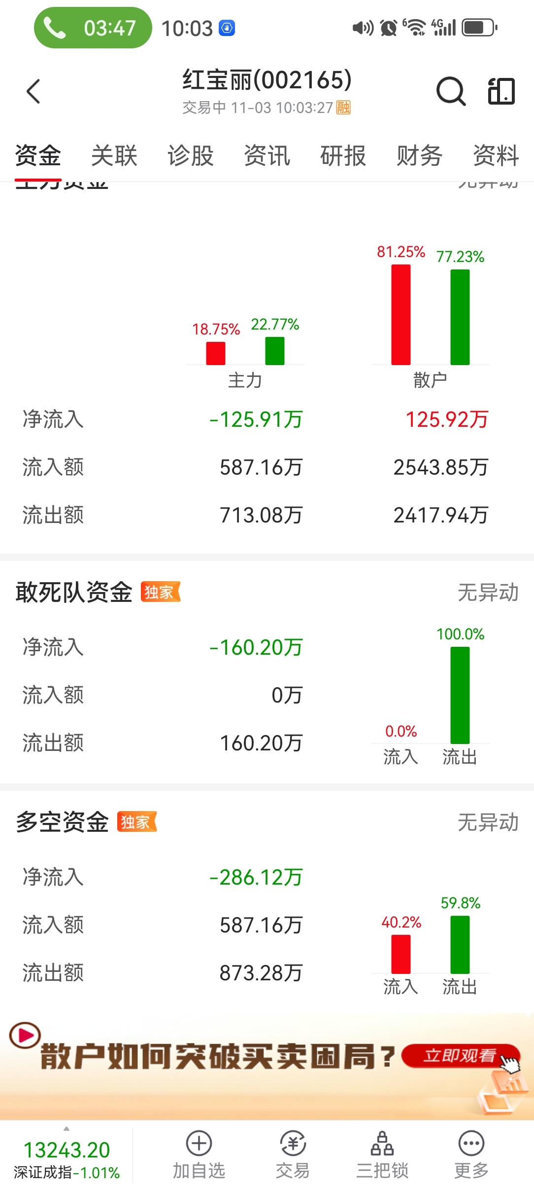 $红 宝 丽(SZ002165)$ 没主力,没戏,走了你们发财