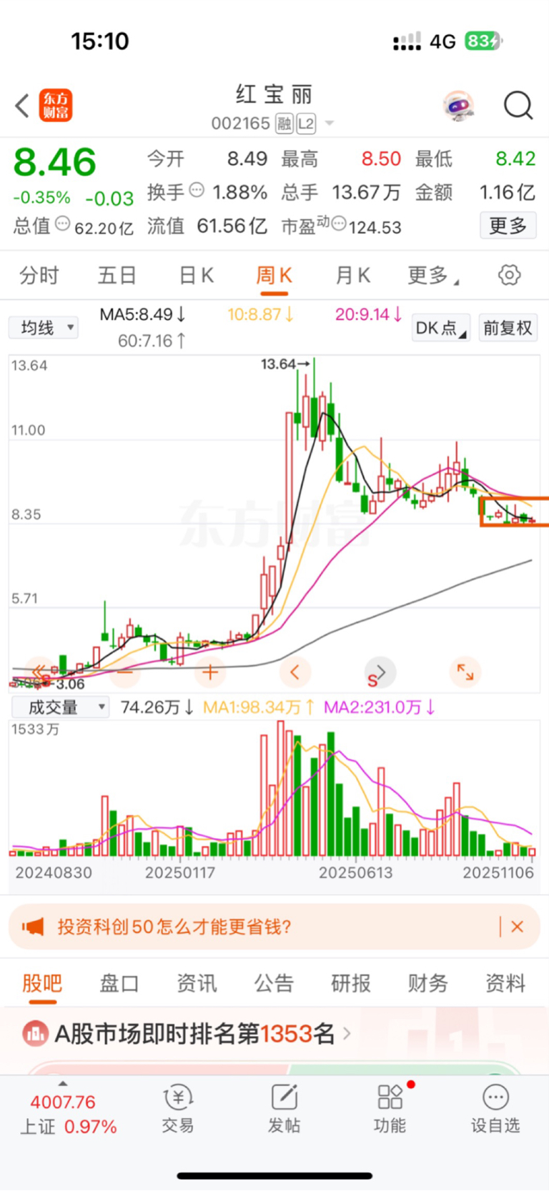 $红 宝 丽(SZ002165)$ 这种走势很危险,下跌中继,再不赶紧拉起来就要向下了,到时候就要去到五六块了