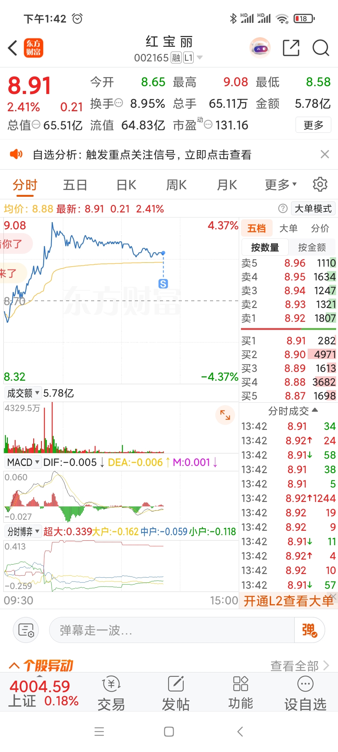 $红 宝 丽(SZ002165)$ 上午没舍得卖,下午慢慢回落就8.92卖掉了,真怕利润又打回去,就把31400股卖掉了,小赚了7000多。