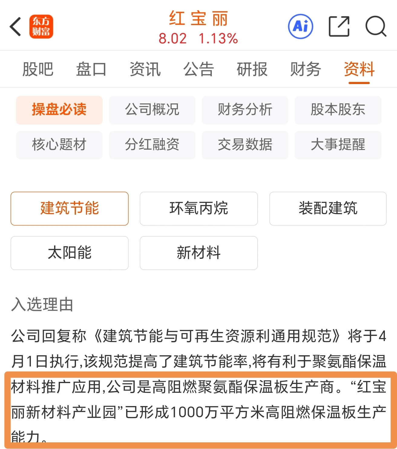 红宝丽(002165)年产 1,000 万平方米高阻燃聚氨酯保温板,采用结构阻燃技术,B1 级永久阻燃,兼具保温与防火,石墨聚苯/聚氨酯阻燃泡沫技术上完全能替代$红 宝 丽(SZ002165)$ $青鸟消防(SZ002960)$ $威海广泰(SZ002111)$