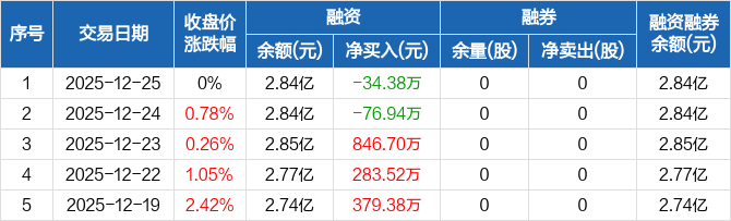 红宝丽:融资净偿还34.38万元,融资余额2.84亿元(12-25)