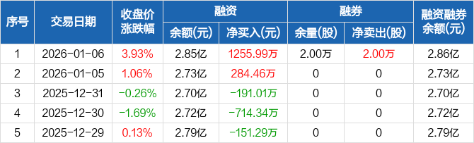 红宝丽:融资净买入1255.99万元,融资余额2.85亿元(01-06)