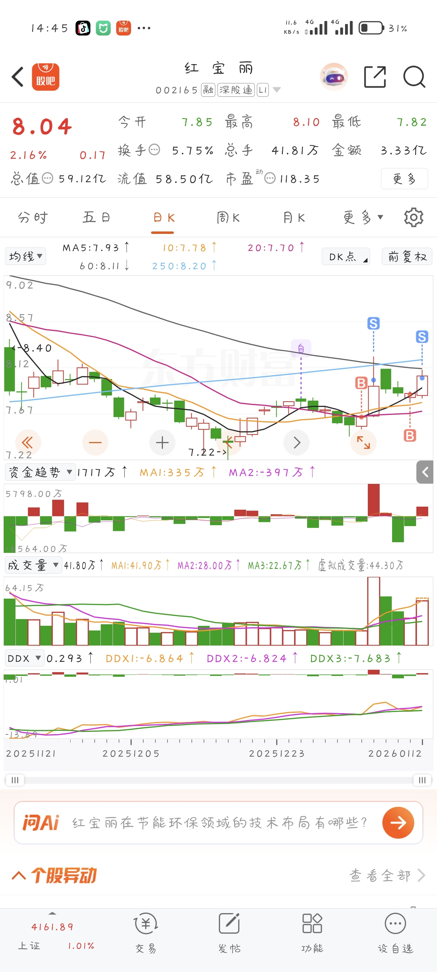 $红 宝 丽(SZ002165)$ 我又溜了溜了