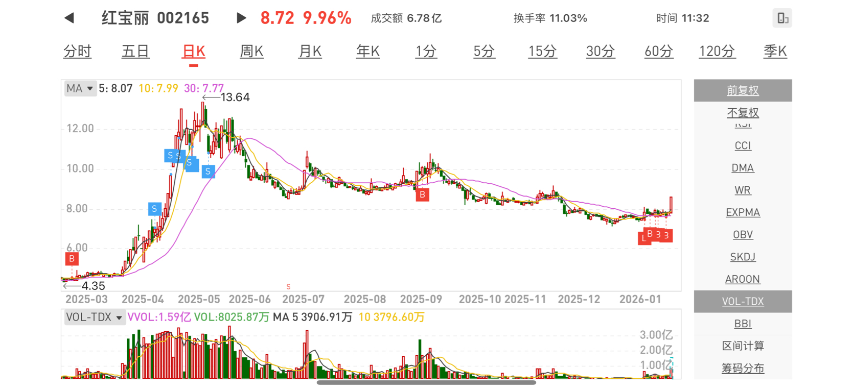 上一波是25年1月8号附近陆续建仓,加仓。拉升后高位陆续减仓,大概12元 附近兑现出局。出货在次高点,也算满意了。此次,26年1月8号开始重新建仓。希望有一个好收益。