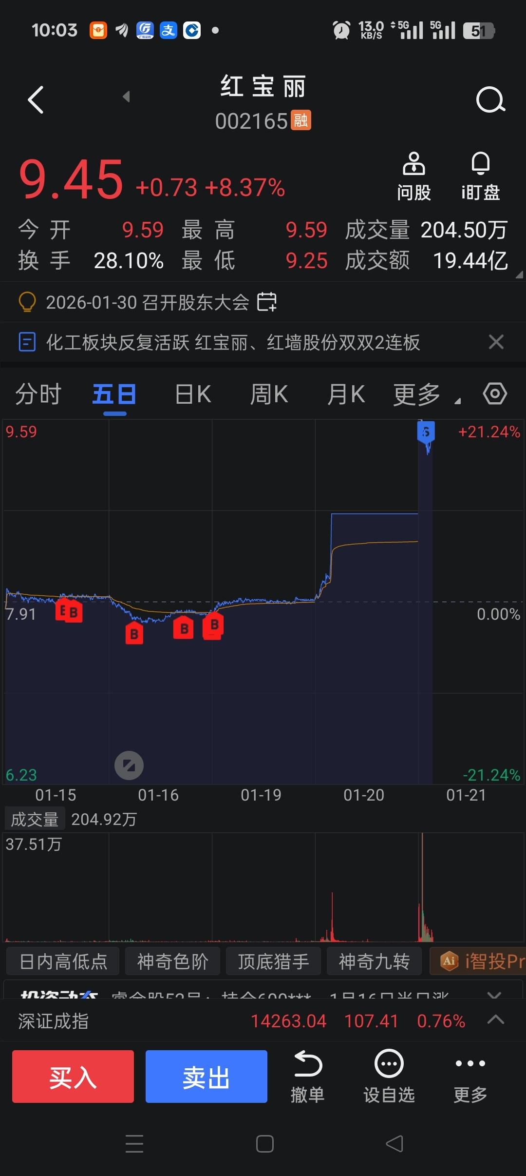 $红 宝 丽(SZ002165)$ 感谢,赚钱落袋为安!!