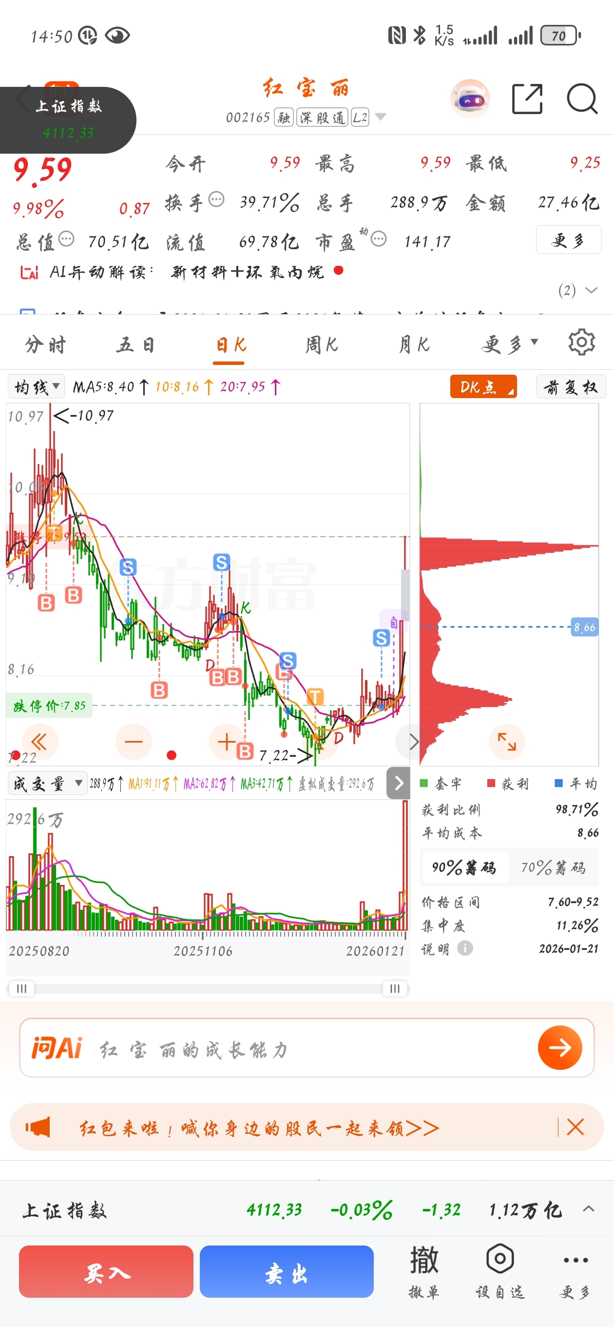 $红 宝 丽(SZ002165)$ 兄弟们,你们替我谢谢主力