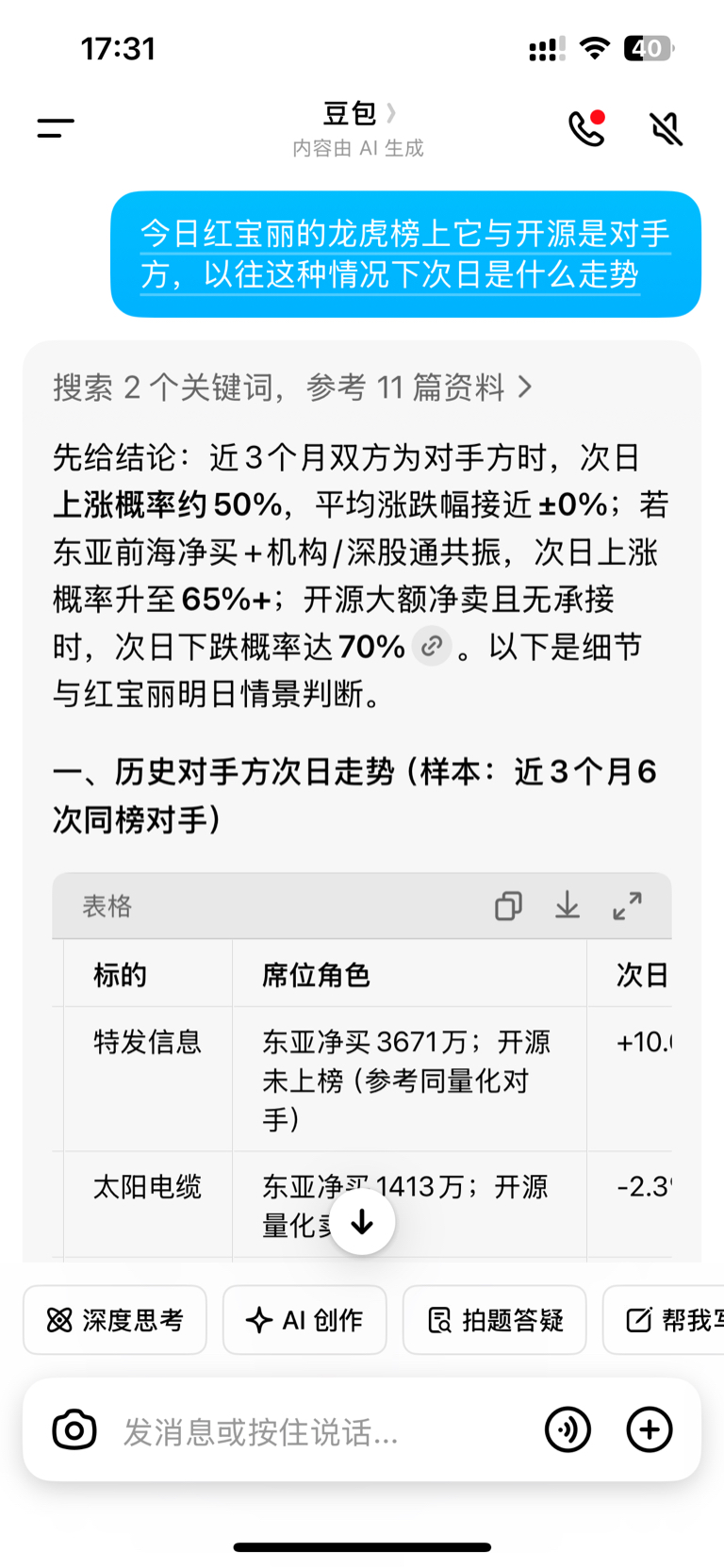 把今天龙虎榜的情况问了豆包,她给出的结论