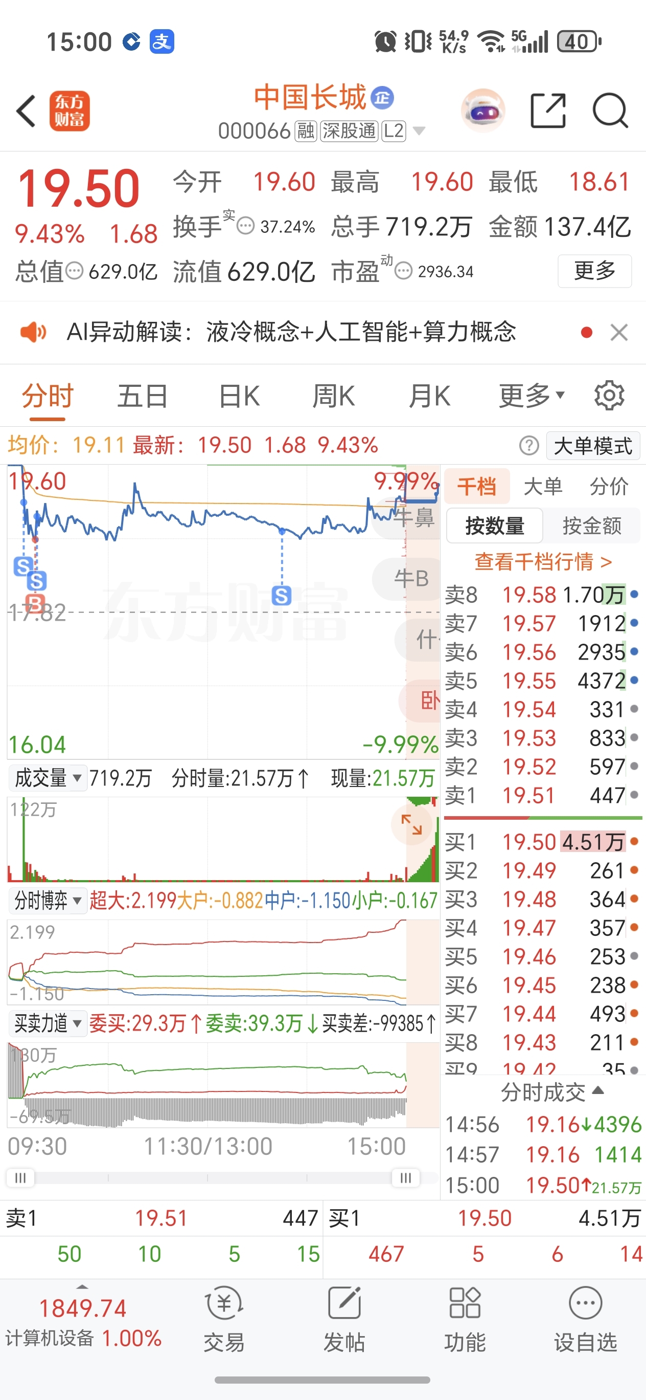 卖飞长城6成仓位来赌你尾盘,我赌个勾八。我恨我自己