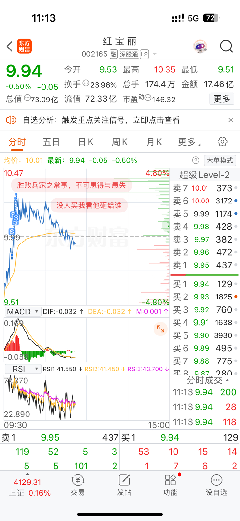 $红 宝 丽(SZ002165)$ 均价10.13全清了,留下的发财