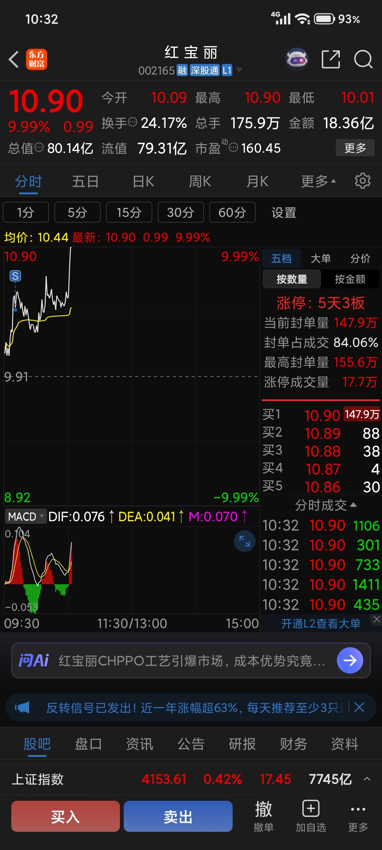 $红 宝 丽(SZ002165)$ 没有格局的我卖飞了。
