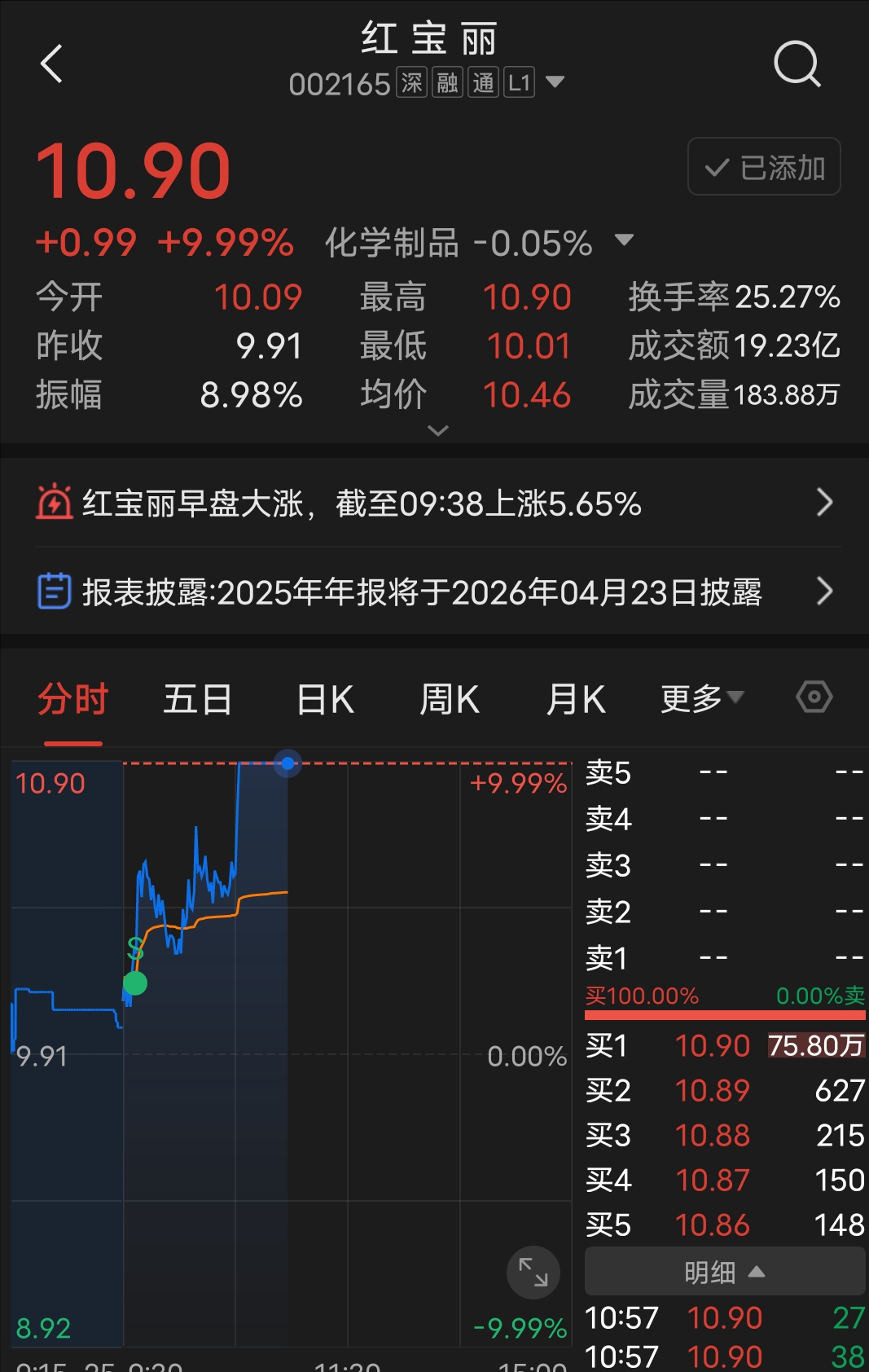 $红 宝 丽(SZ002165)$ 同志们好!