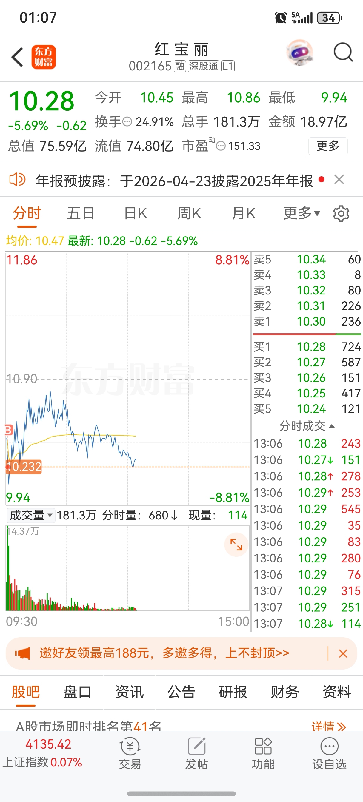 $红 宝 丽(SZ002165)$ 回踩我成本线吗?