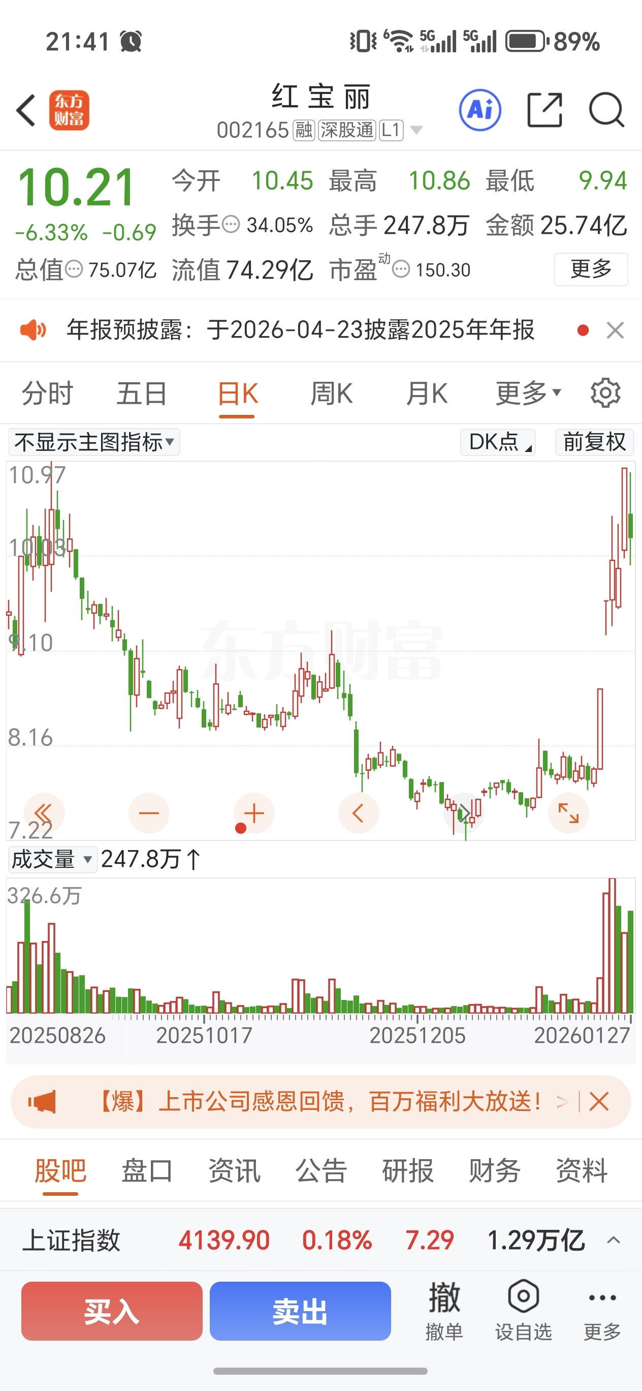 $红 宝 丽(SZ002165)$ 这票明天不反包,短期废了年前不会有行情了,跑就一个字,不做任何幻想