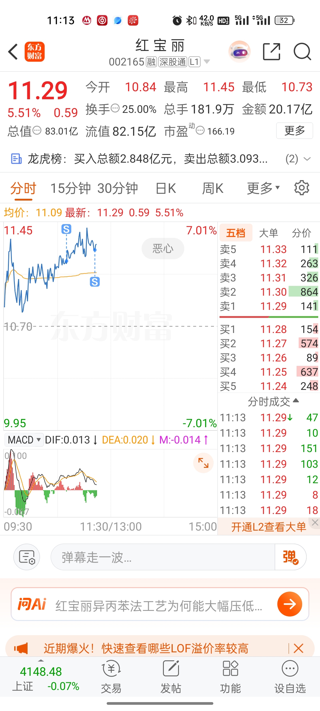 $红 宝 丽(SZ002165)$ 不格局了,下次再见
