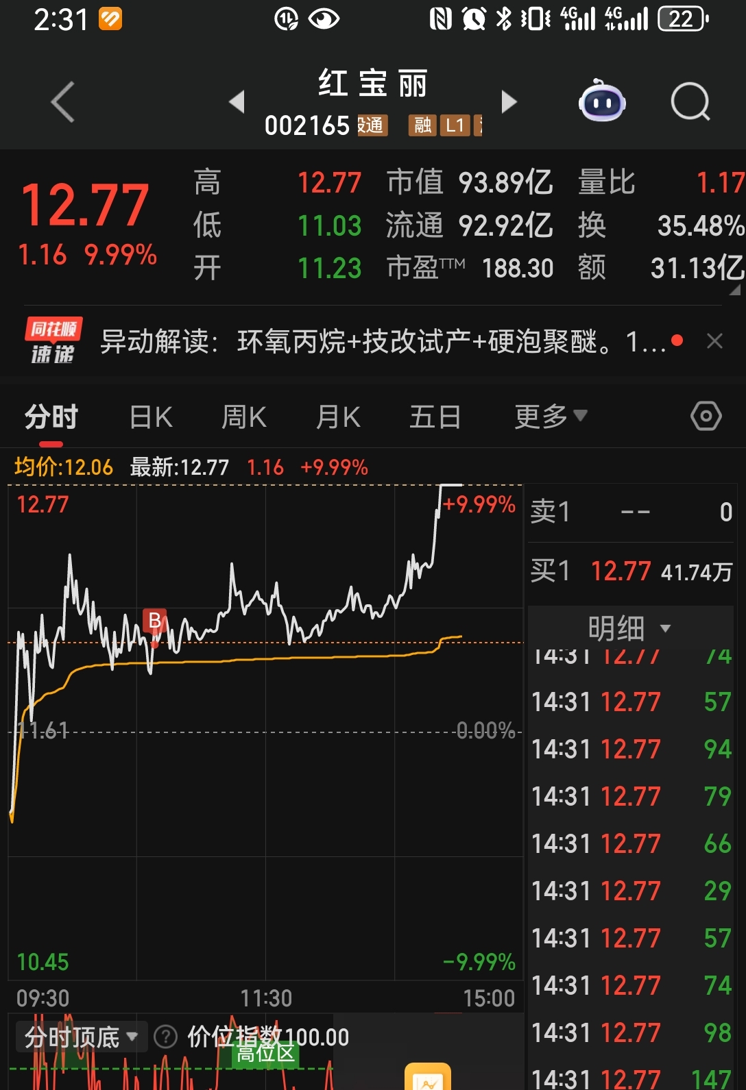 今天保本出了墨龙,以为卖飞了,幸亏进了宝丽,天通不错,没拿住,周一看竞价情况进,