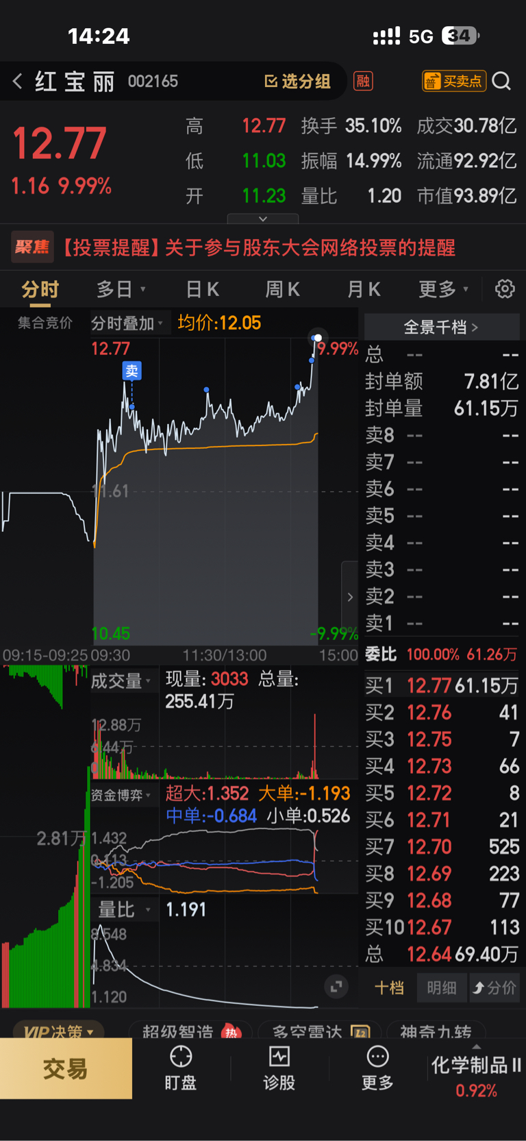 $红 宝 丽(SZ002165)$ 红宝丽今天是不是3天20异动了,不会卖飞了吧