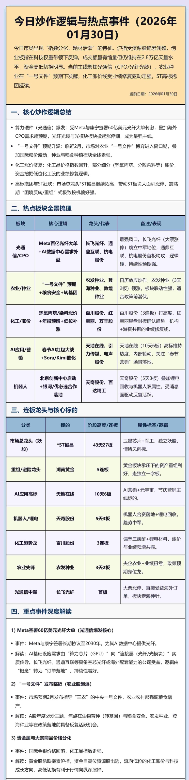 今日炒作逻辑与热点事件:贵金属与大宗商品分化,国际金银价回落;Meta大单引爆光