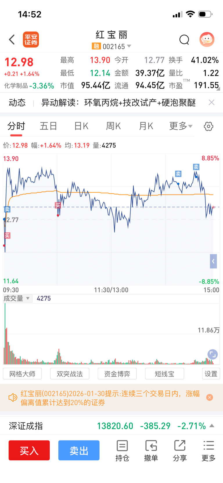 $红 宝 丽(SZ002165)$ 第一次手动搞赢量化,哈哈哈,明天继续T