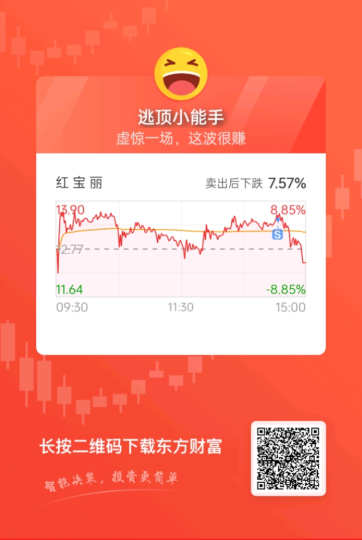 $红 宝 丽(SZ002165)$ 成功逃跑,今天还去追高的,亏死活该,不值得同情