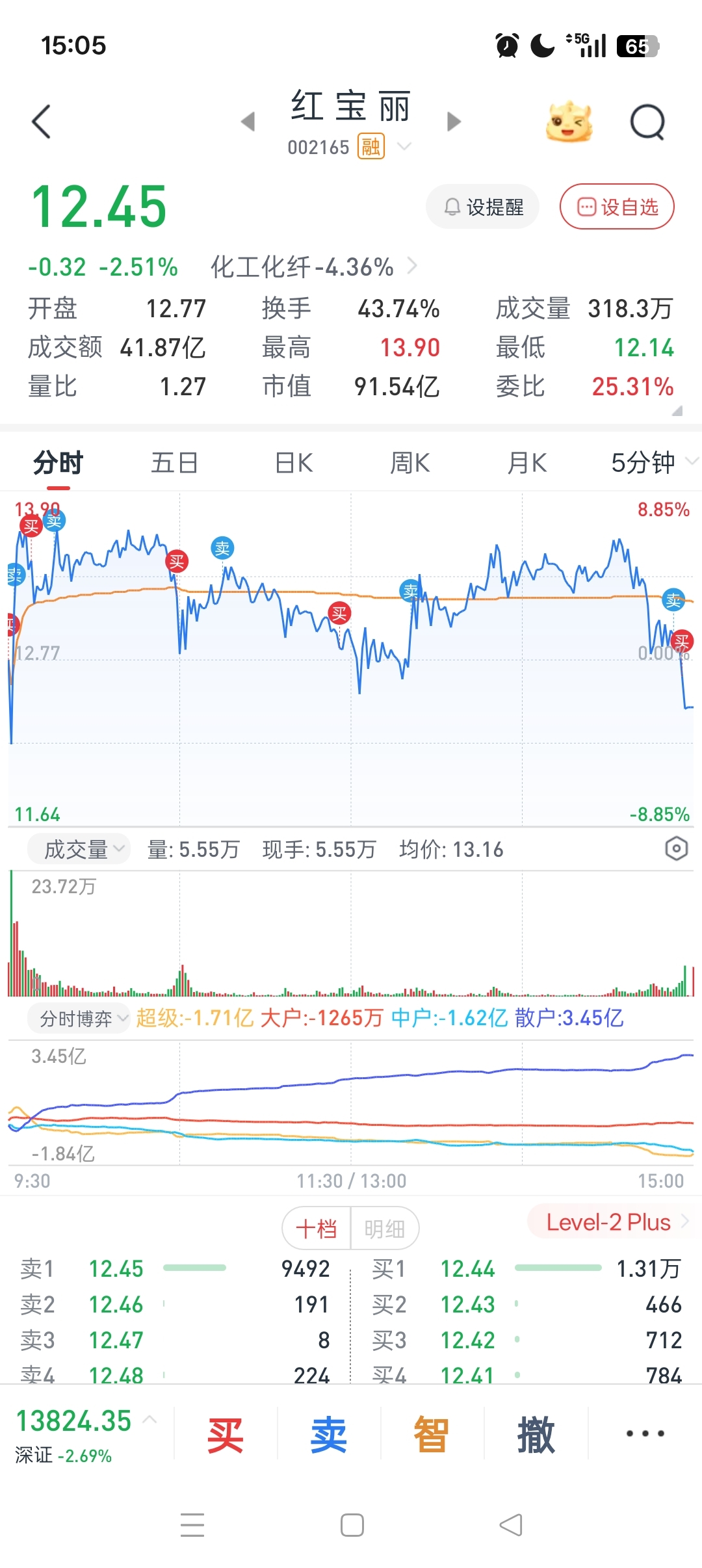$红 宝 丽(SZ002165)$ 我今天是赚钱的。纠结了一天没人会在压力位出货这是我的逻辑。而且外面太惨了。但是看分时是真的非常非常像出货。所以我t了一天。倒赚一个多点。你出去也是接飞刀