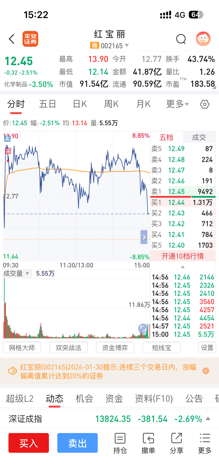 $红 宝 丽(SZ002165)$ 卖出去不舍又买回来,亏死