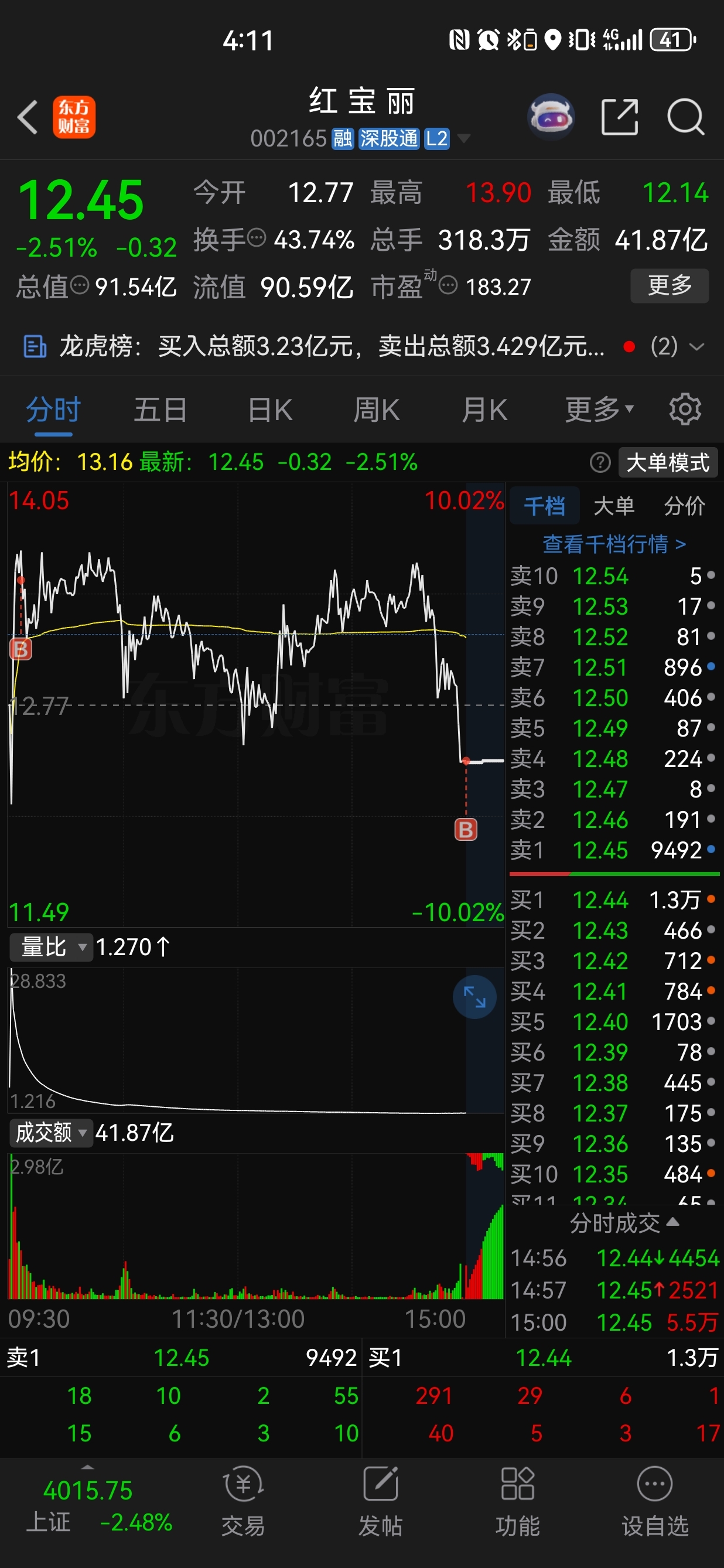 $红 宝 丽(SZ002165)$ 主力尾盘砸下去拿便宜筹码打开明天上涨空间,明天返攻