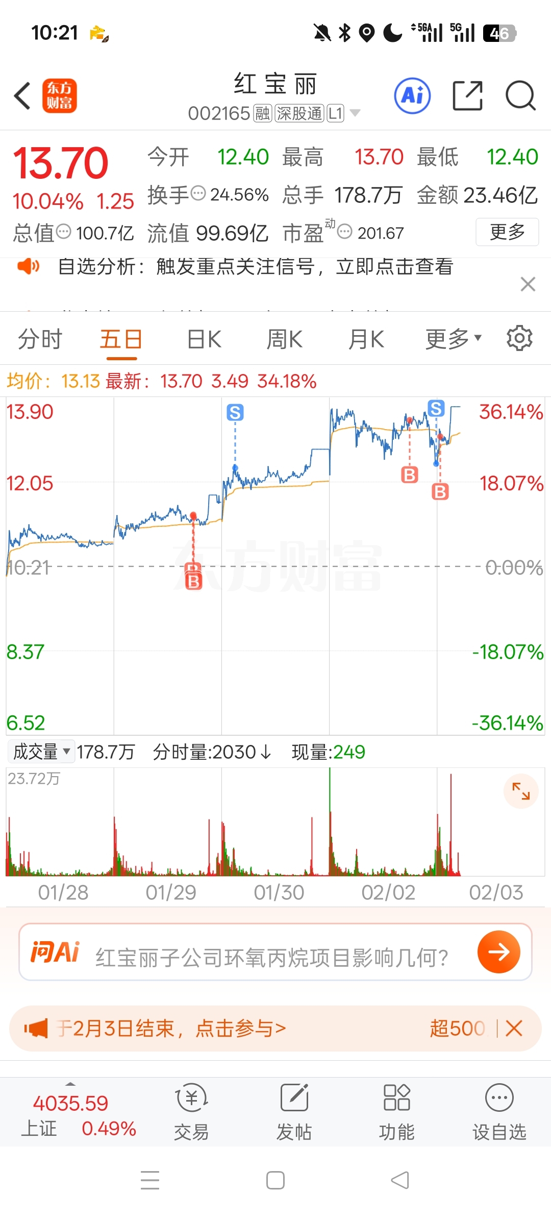 $红 宝 丽(SZ002165)$ 频繁交易迟早美好