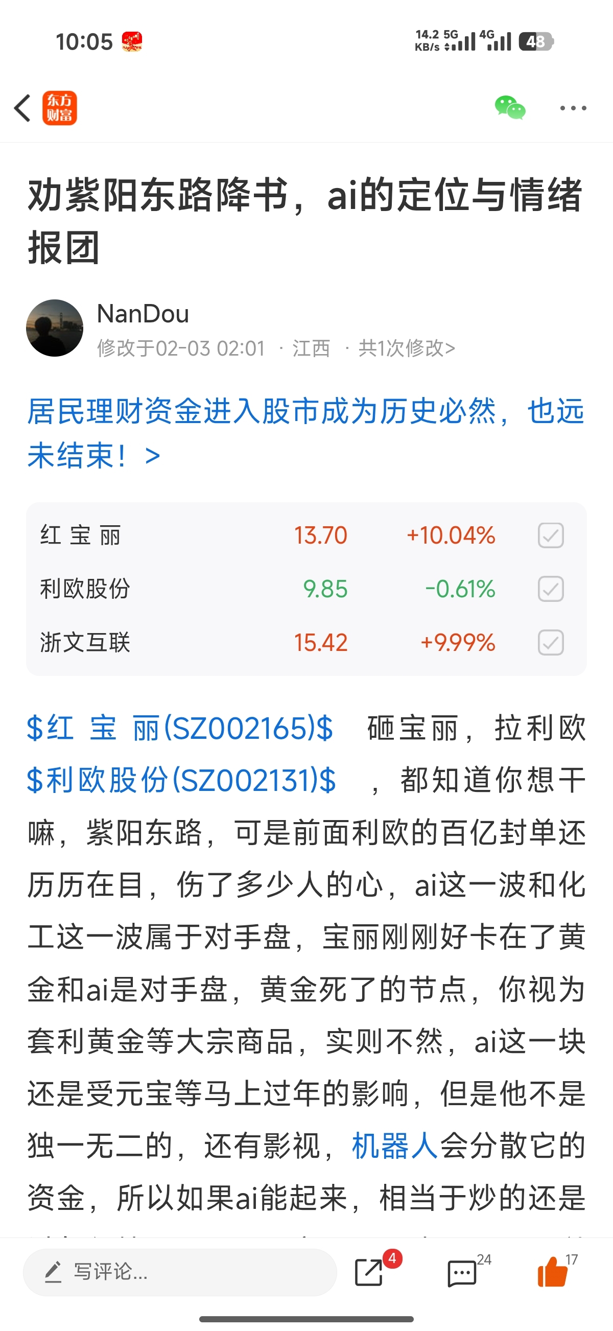 温馨提示: 1.根据《证券法》规定,禁止编造、传播虚假信息或者误导性信息,扰乱证券市场;2.用户在本社区发表的所有资料、言论等仅代表个人观点,与本网站立场无关,不对您构成任何投资建议。用户应基于自己的独立判断,自行决定证券投资并承担相应风险。《东方财富社区管理规定》