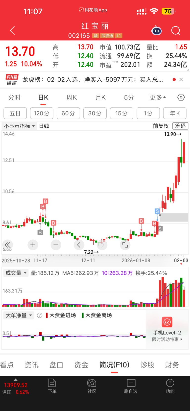 $红 宝 丽(SZ002165)$ 宝丽啊,我的阿丽啊,亏了死扛,一涨就跑,不堪回首啊