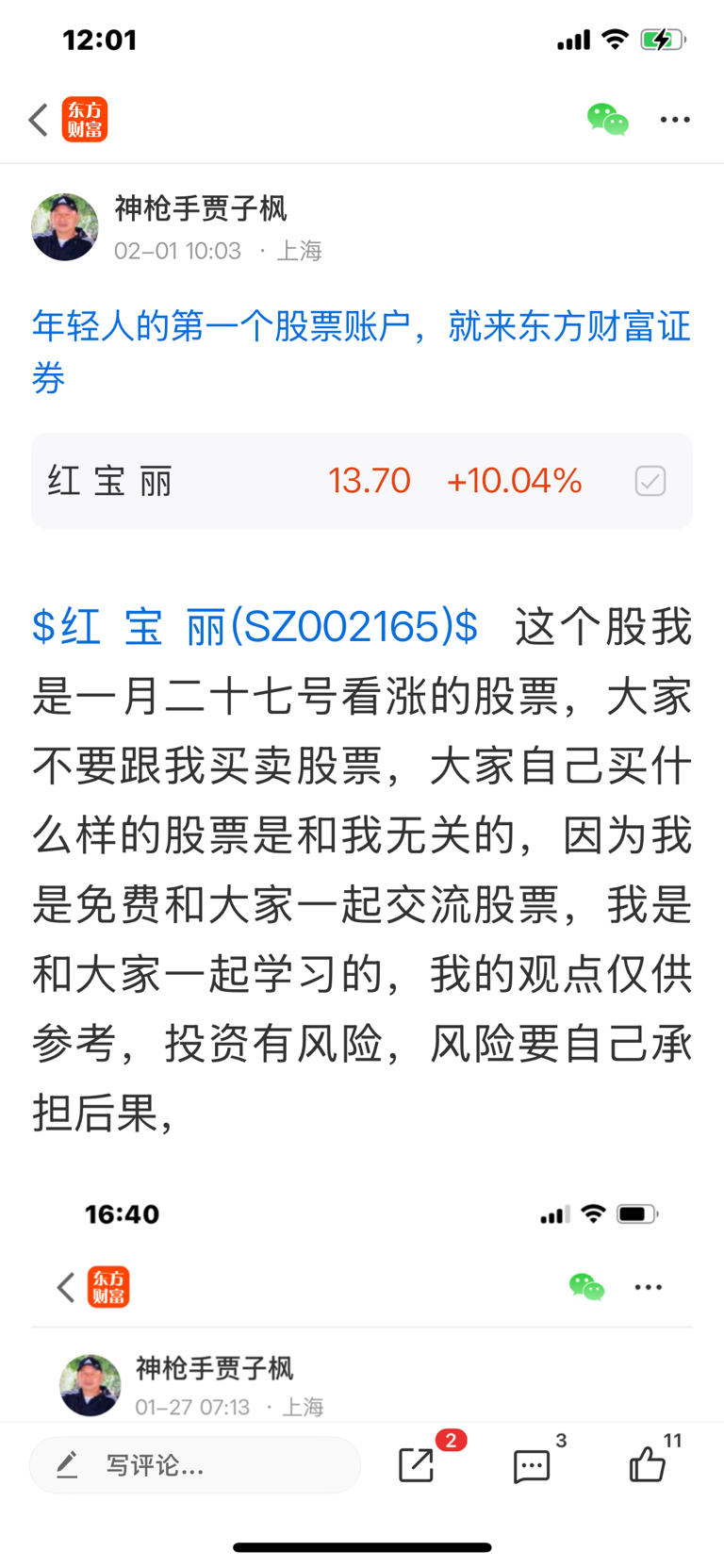 这个是我一月二十七号发表看涨的股票,大家不要追高买入,必须要做好高抛低吸,我是不