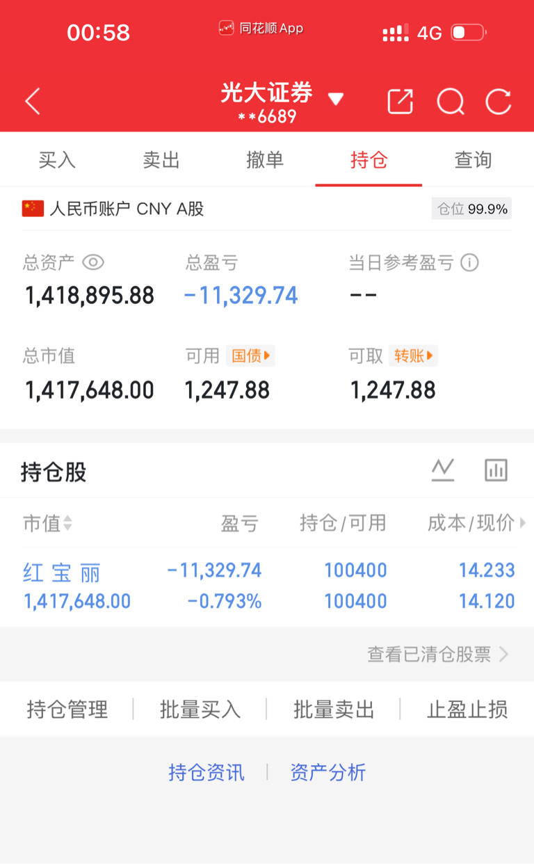 大家早上好,记得先赞后看!我昨天买的$红 宝 丽(SZ002165)$ ,目前已经快亏1个点了,先说一下今天操作的策略:今天不管涨跌,我都会直接出局,这个位置整体偏高,大家千万别盲目加仓,我会随时提示出货。最近操作太频繁,导致连续亏损,真的很对不起信任我的朋友,在这里诚恳跟大家道歉。希望大家再给我一次机会,把之前的状态找回来,接下来我会稳扎稳打,好了不说了,记得给我点赞评论178!