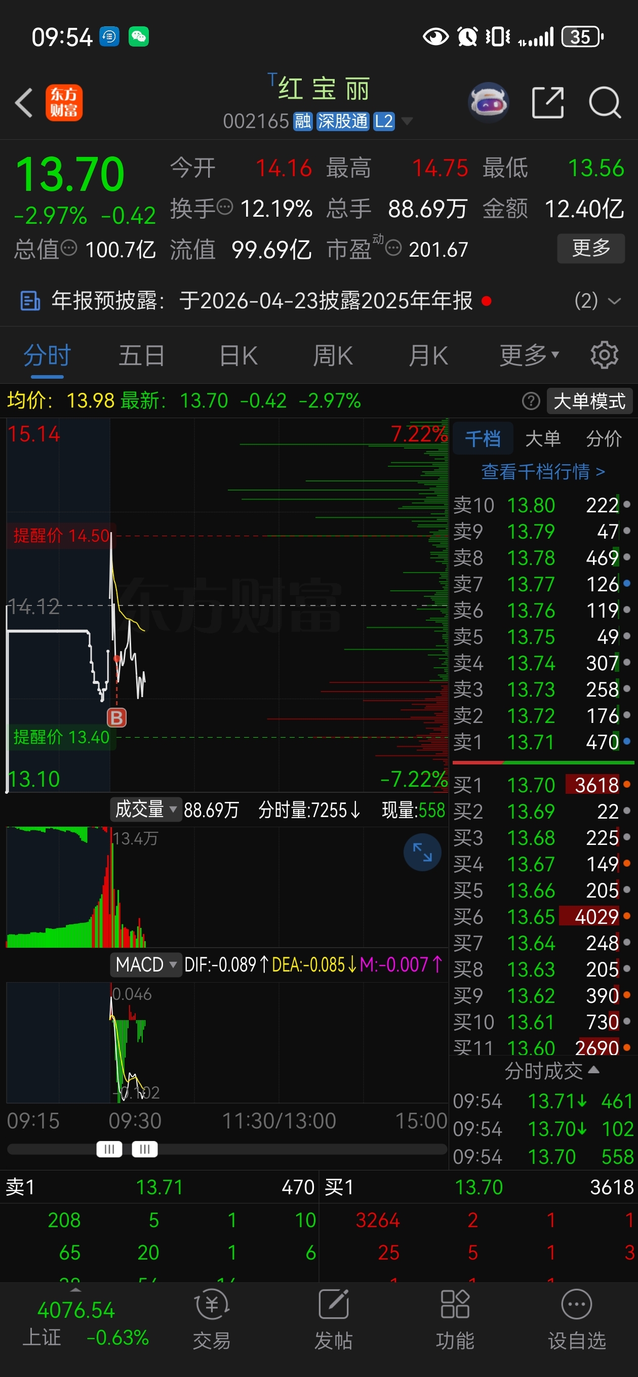 $红 宝 丽(SZ002165)$ 能给水下低吸的机会不多,兄弟们把握住。我直接卖了盈利得来低吸。富贵险中求。看好下午反包前高!