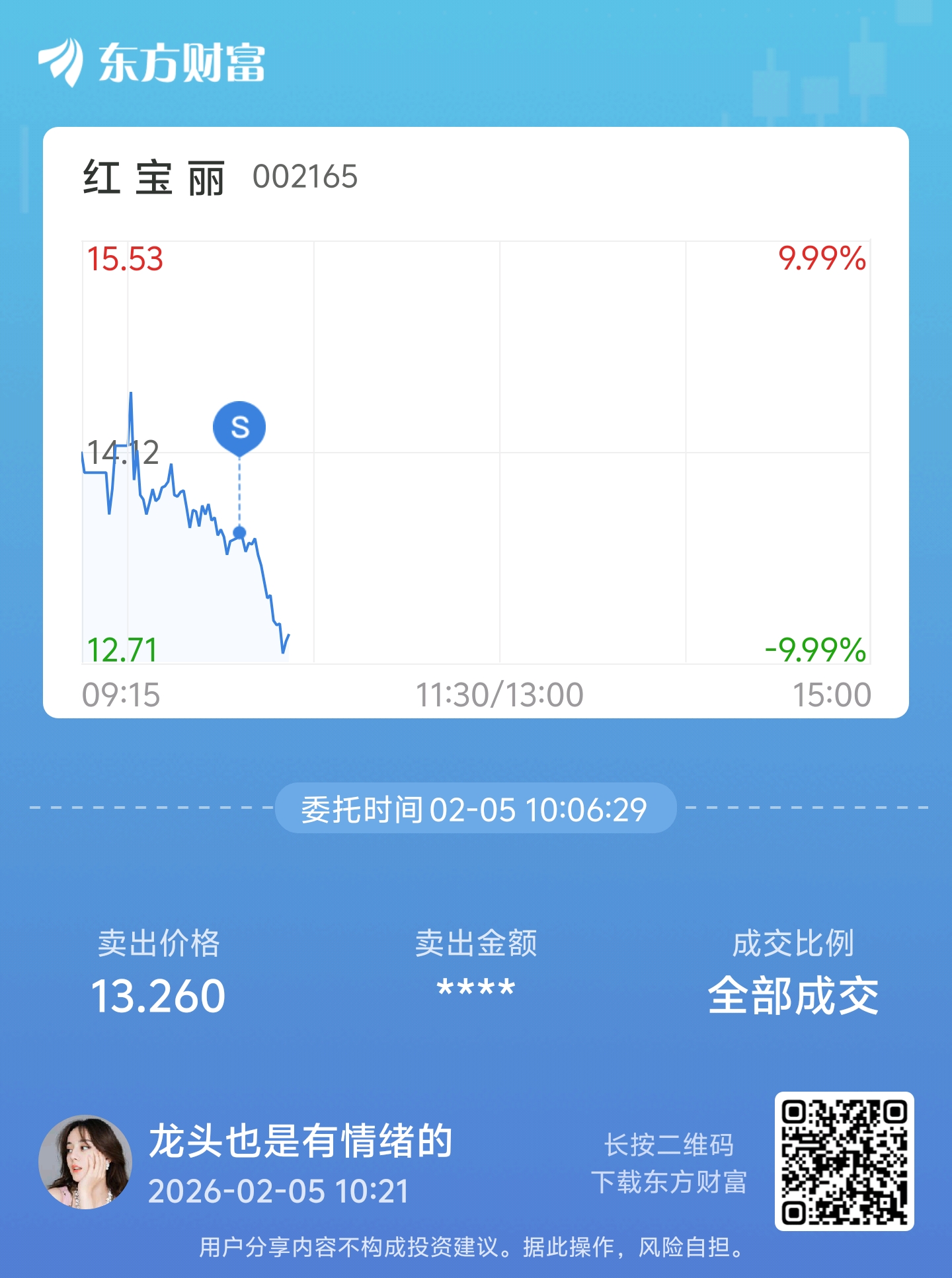 温馨提示: 1.根据《证券法》规定,禁止编造、传播虚假信息或者误导性信息,扰乱证券市场;2.用户在本社区发表的所有资料、言论等仅代表个人观点,与本网站立场无关,不对您构成任何投资建议。用户应基于自己的独立判断,自行决定证券投资并承担相应风险。《东方财富社区管理规定》