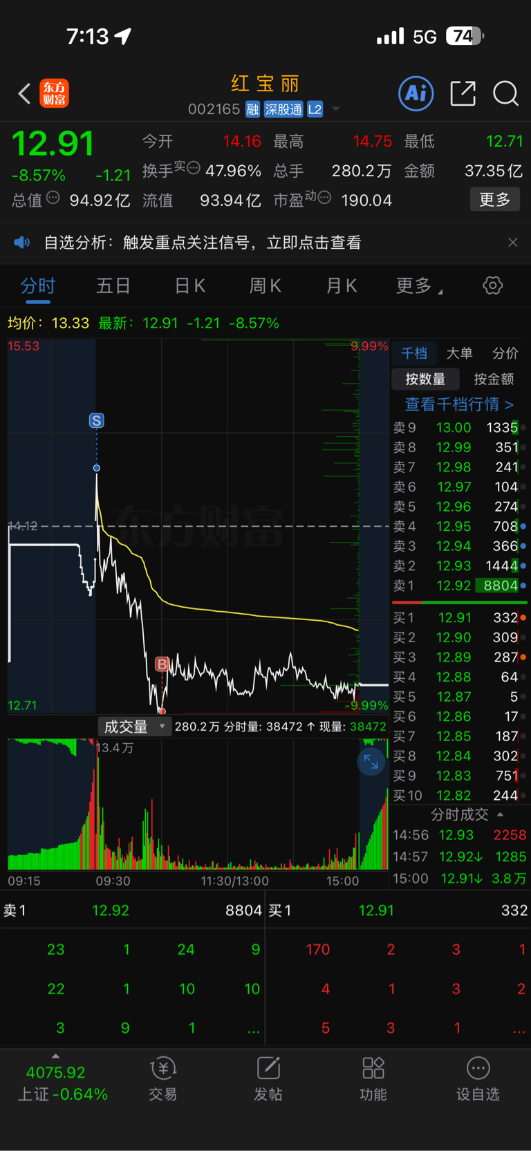 $红 宝 丽(SZ002165)$ 宝丽别闹,我这么坚定持有你