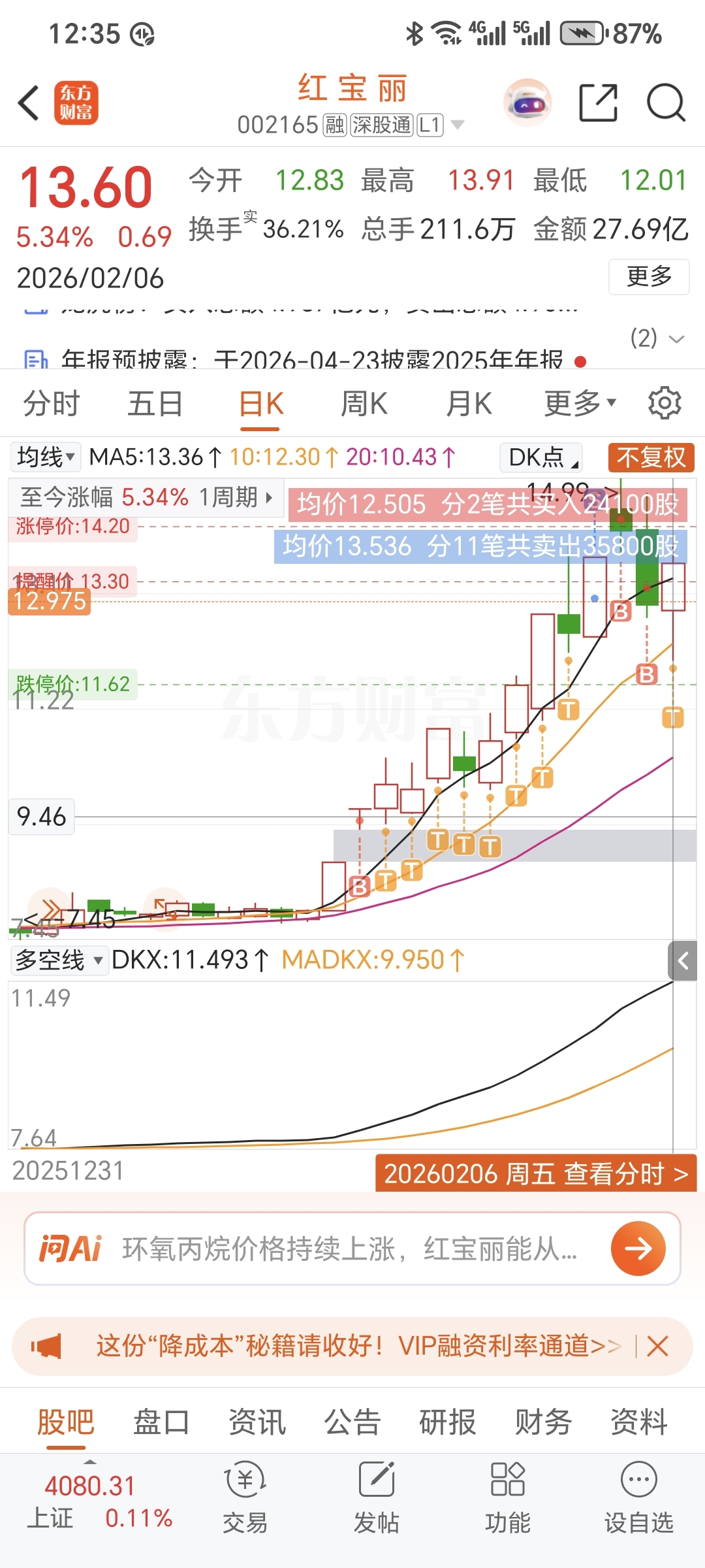 $红 宝 丽(SZ002165)$ 昨天又加仓了,提心吊胆的
