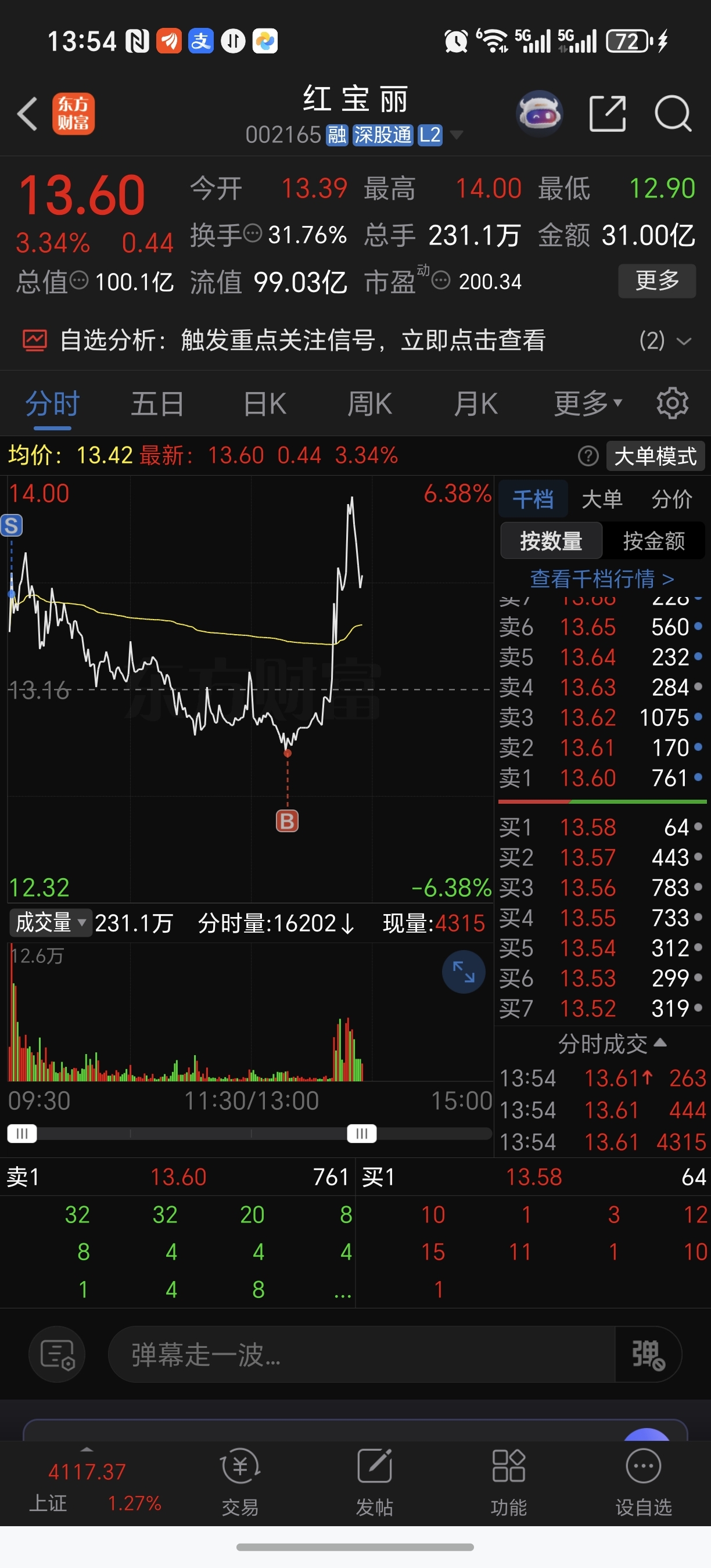 $红 宝 丽(SZ002165)$ 今天这波操作还行