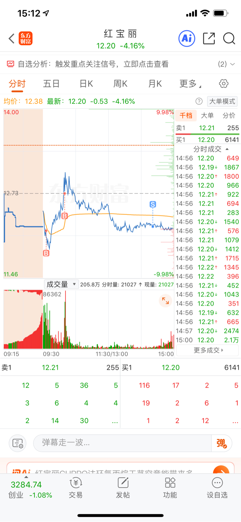 $红 宝 丽(SZ002165)$ 吐了,次次红盘不舍得卖……深水割了
