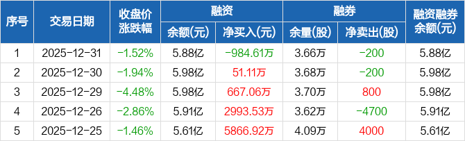 莱茵生物:融资净偿还984.61万元,融资余额5.88亿元(12-31)