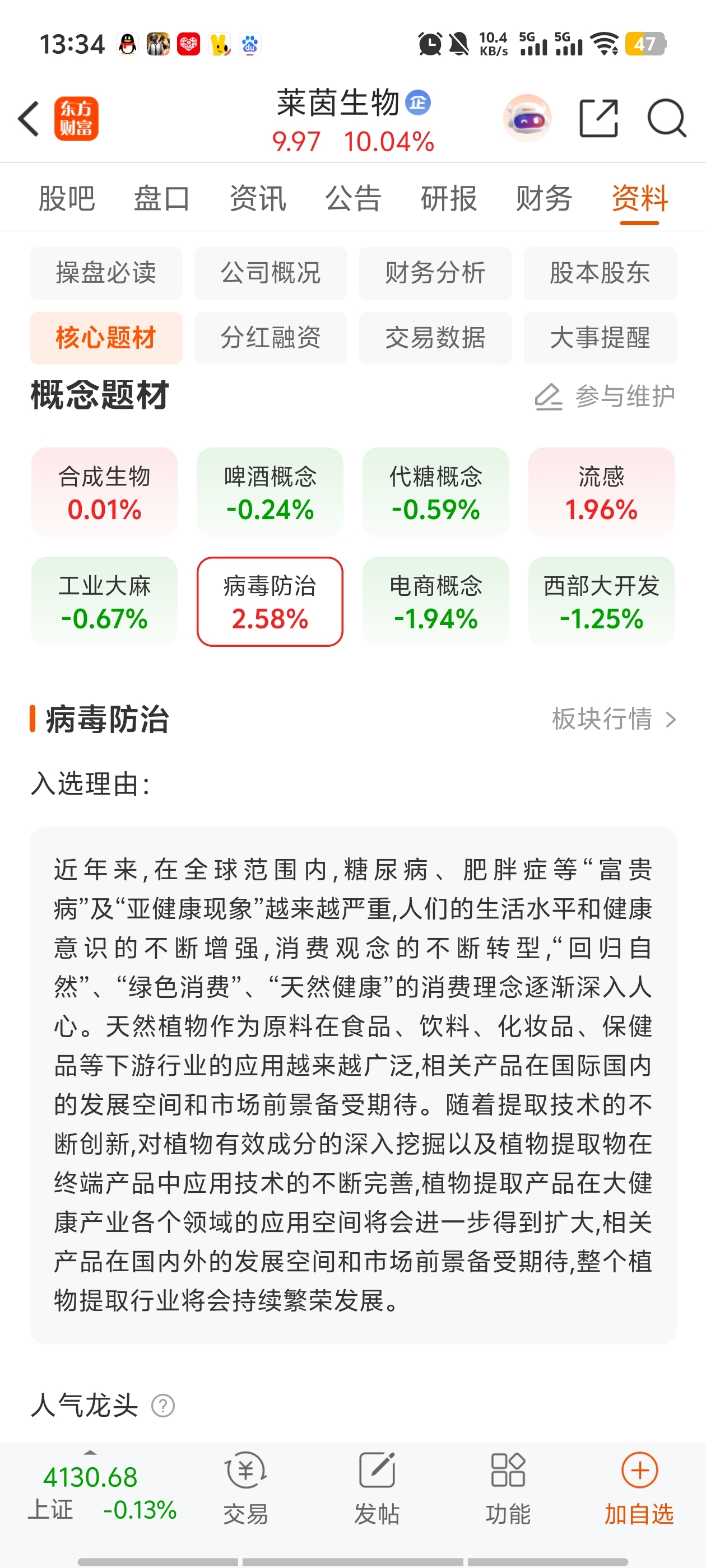 $莱茵生物(SZ002166)$ 啊,?这也能蹭上病毒防治??