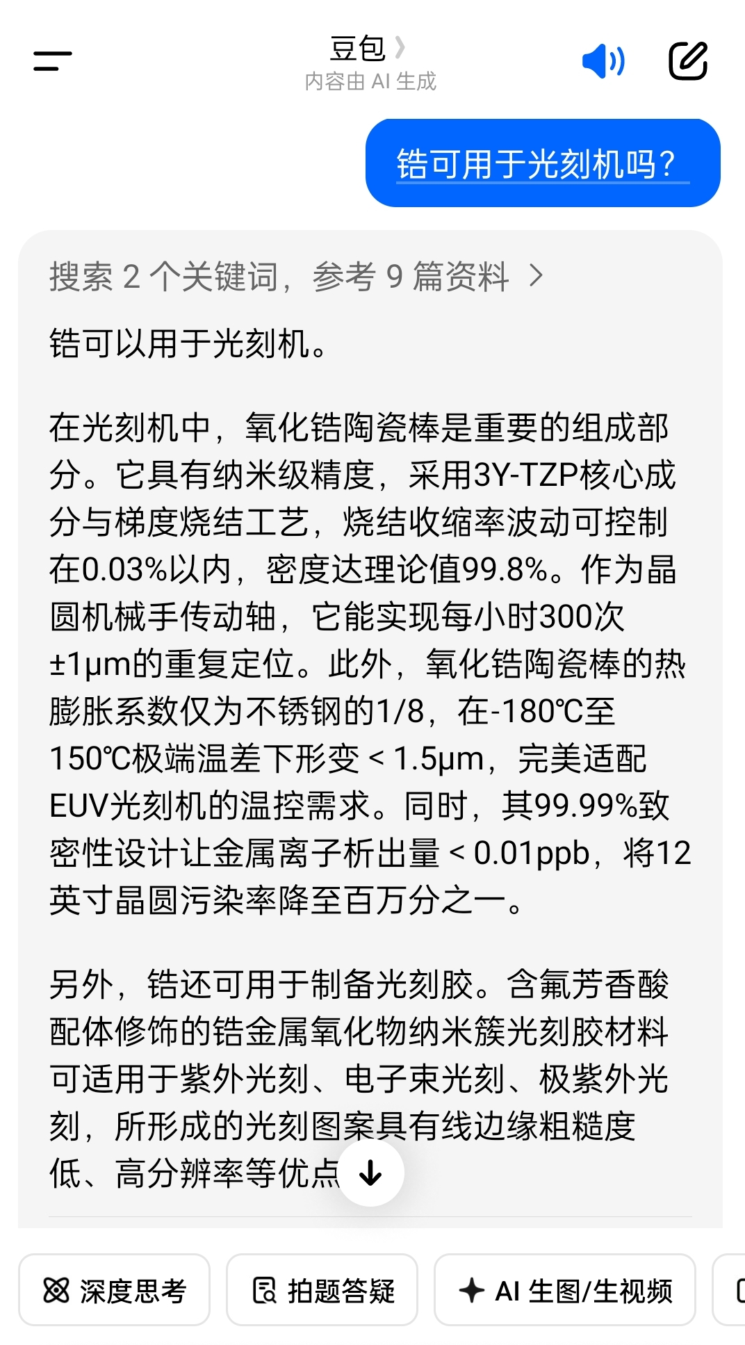 原来锆也可用于光刻机和光刻胶,看来锆是个全能型的稀有金属!且行且珍惜!!!